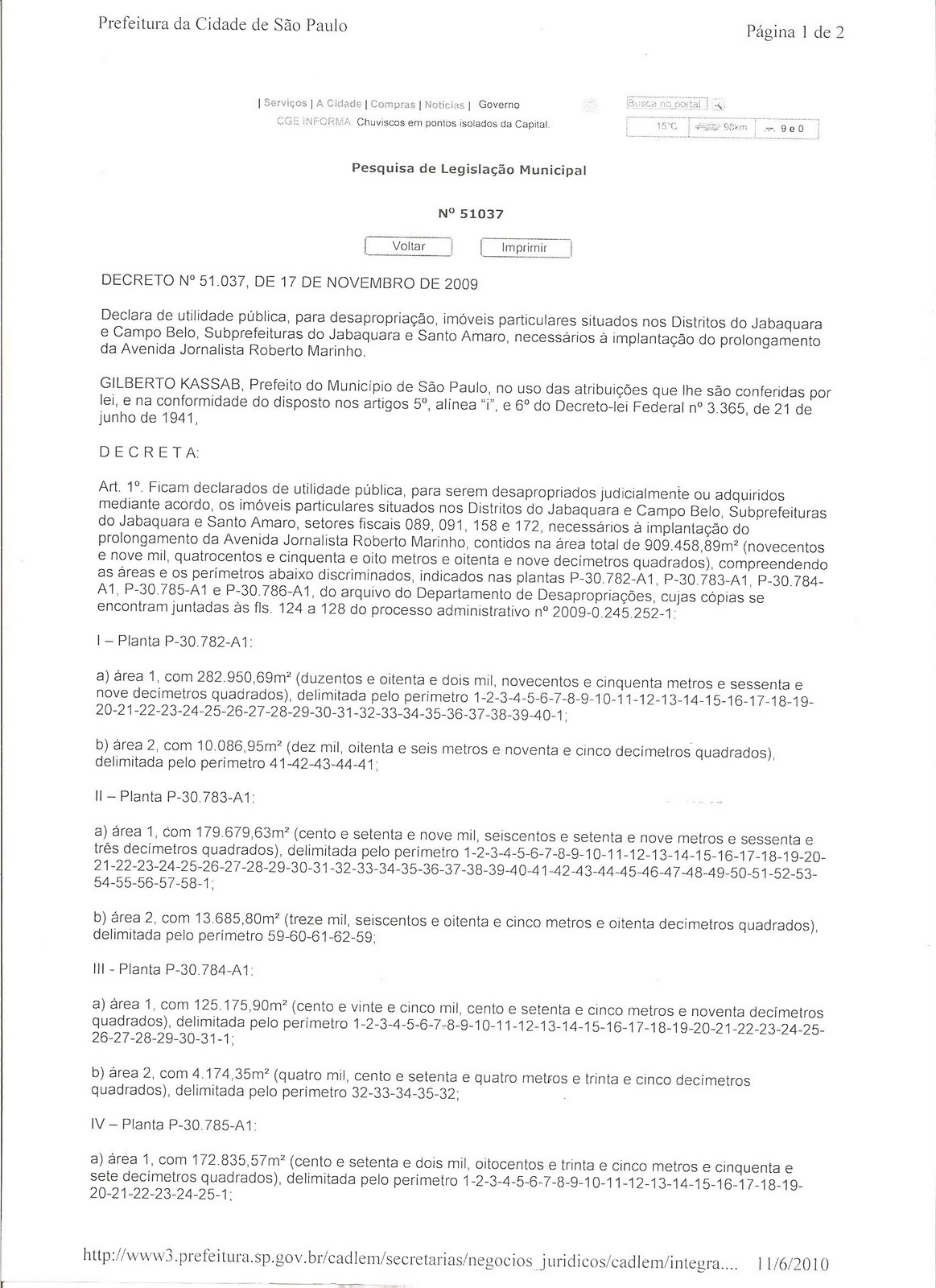Acima, vocês tem o Decreto 51.037 de 17 de novembro de 2009.Que declara a nossa aréa como de utilidade pública.