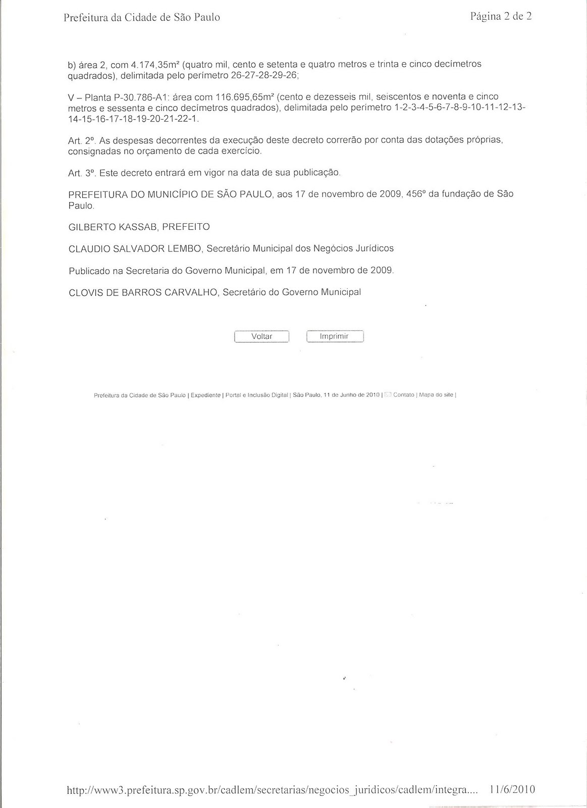 Acima, vocês tem o Decreto 51.037 de 17 de novembro de 2009.Que declara a nossa aréa como de utilidade pública.
