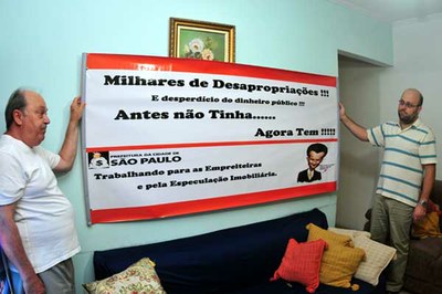 Alberto e Elvira são a favor da continuação da avenida. “É necessário”, disseram. Só julgam que a prefeitura tem outras opções. Prova disto seria o projeto lançado em 2001, para a mesma área, que previa 500, em vez das duas mil desapropriações que constam no projeto atual. “Com tanta gente debaixo da ponte, eu não entendo por que o prefeito quer retirar 2 mil famílias que vivem bem, em geral idosos como a gente, para fazer um parque.”