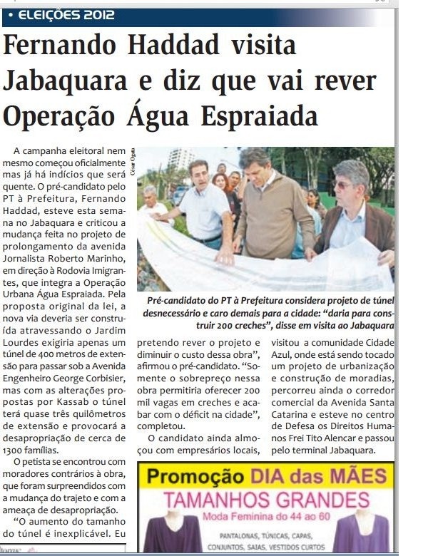 atual Prefeito Sr. FERNANDO HADDAD, CUMPRIU